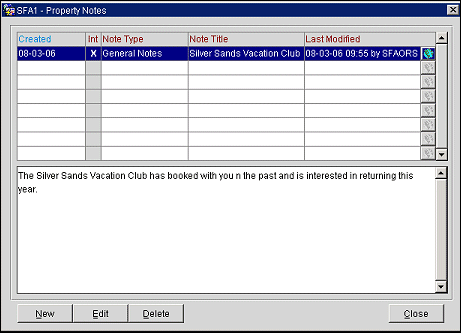 To create a new lead note select the New button. To edit an existing lead note, highlight the note to edit and select the Edit button. The Lead Notes - Add or Edit screen appears.