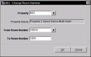 When an existing room number needs to be assigned a new room number and the OPR <Version Number> OPERA Reservation System license code is active, this can be completed by selecting the Utilities>Property Config>Change Rooms>Change Room Number (ORS to PMS). For example, if a property has it rooms generated in an ORS environment and the property activates its PMS license codes, the ORS generated room numbers can be changed to match the existing room numbers for the property.