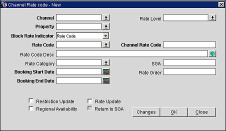 Note: For OCM users, the Channel Rate Code - New or Edit screen will be accessed from the Rates screen by selecting the New or Edit button in the Channel Management grid area.