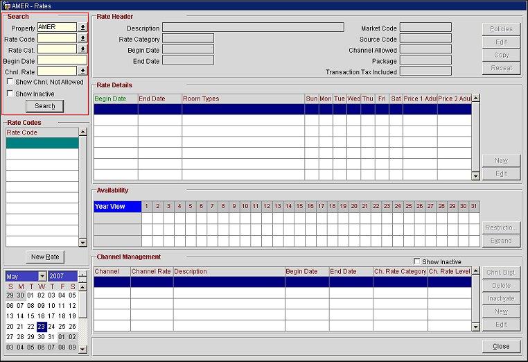 Understanding the Search Area of the Rates Screen