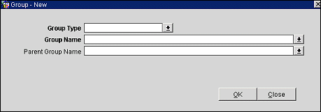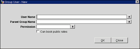 New. Select this button to link a new travel agent or company profile to the parent travel agent or company group. The Group - New screen appears.