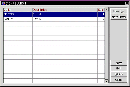 Display Sequence. Enter the sequence number in which the relation code will be displayed in a list of values.