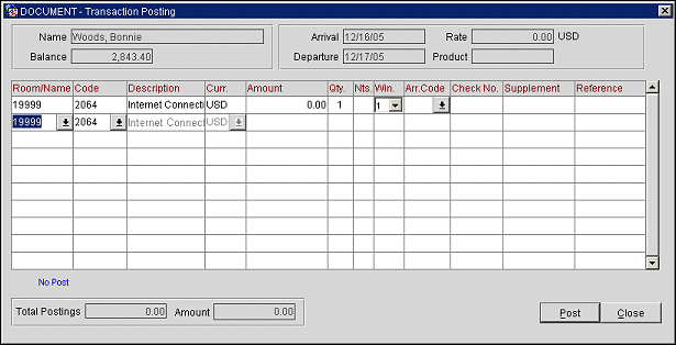 Post. Post the transaction to the guest account. (You may also post the transaction by pressing the [Enter] key at any time while working with the Transaction Posting screen.)