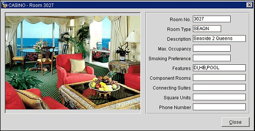 Room Type. Room type of the room number. If an image of this room type is available for viewing it is displayed when you click the room type. (See Room Picture and Description, below.)