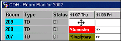 For example, suppose you want to move the guest in room 207 to room 209. Place your cursor on the guest's name and hold down the left button.