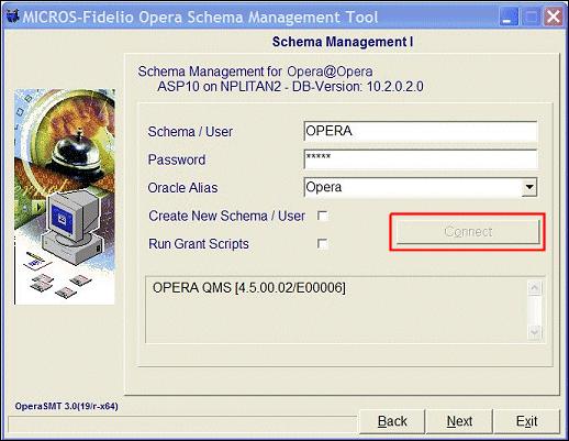 - Locate the OPERA_SMT.EXE in the tools directory of your OPERA installation, for example, \\Micros\opera\tools and start it. Click on Schema Maintenance.