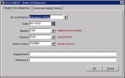 Folio No. Enter the folio number of the folio for which you are entering an old balance.