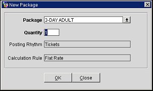 Package. Select the down arrow to choose the Ticket Package from the list of values. Only packages that have been configured as a Ticket Package appear.